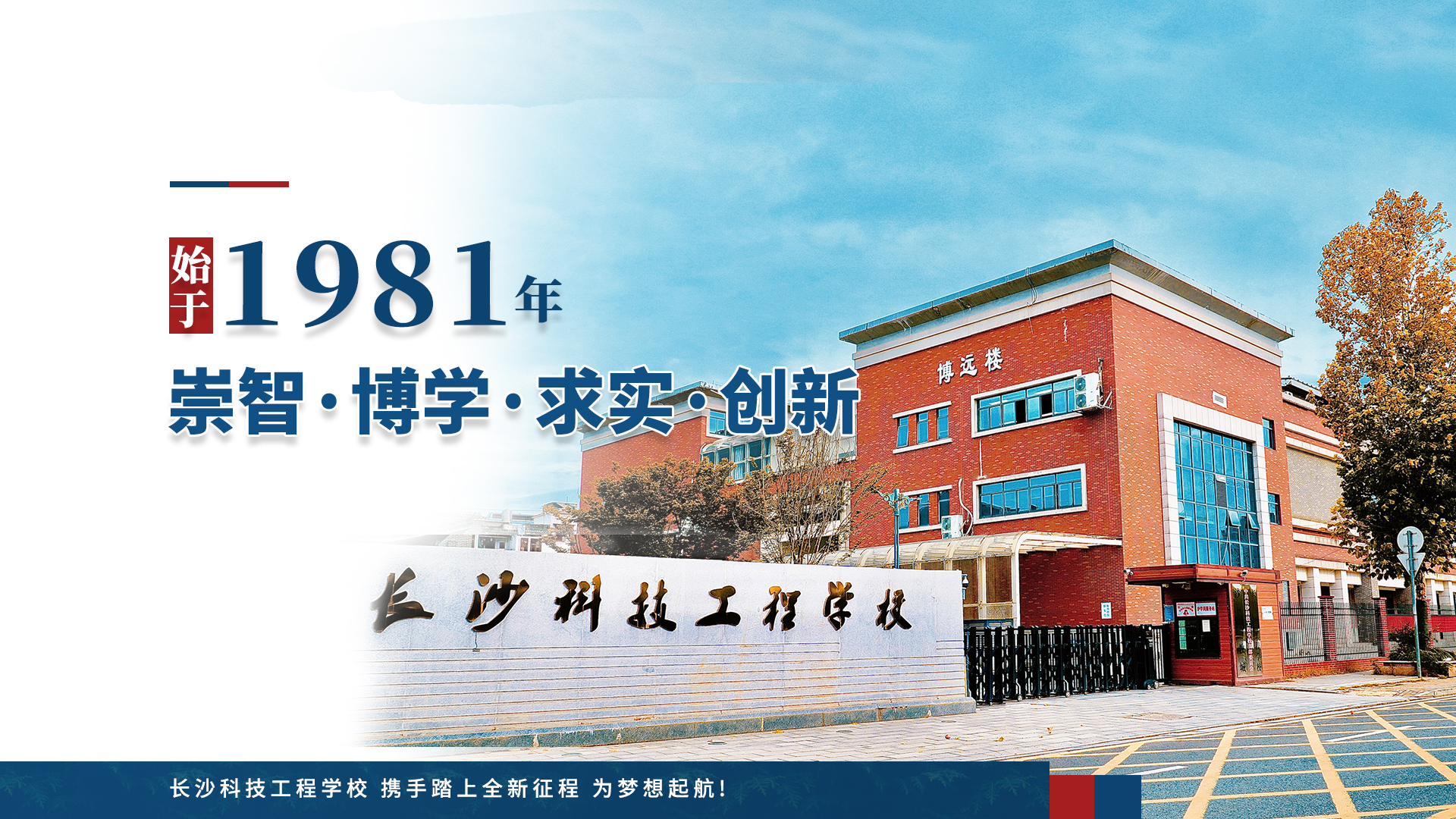長(zhǎng)沙科技工程學(xué)校是長(zhǎng)沙市教育局主管的全日制中等職業(yè)學(xué)校,學(xué)校創(chuàng)辦于上世紀(jì)八十年代,源于1981年3月由中國(guó)民主建國(guó)會(huì)湖南省委員會(huì)、湖南省工商業(yè)聯(lián)合會(huì)聯(lián)合創(chuàng)建的“長(zhǎng)沙達(dá)信財(cái)會(huì)進(jìn)修學(xué)校”。學(xué)校位于中國(guó)高質(zhì)量發(fā)展百?gòu)?qiáng)區(qū)——長(zhǎng)沙市開(kāi)福區(qū),校園占地128畝,建筑面積68000多平方米,這里交通便利,環(huán)境優(yōu)美,具有完善的現(xiàn)代化教學(xué)設(shè)施設(shè)備。 辦學(xué)四十多年來(lái),數(shù)代長(zhǎng)科人弘毅堅(jiān)韌、自強(qiáng)不息,鑄就了“修身精技”的學(xué)校精神,打造了“崇智博學(xué),求實(shí)創(chuàng)新”的校園文化。一大批職教名師執(zhí)教于此,春風(fēng)化雨,躬耕不輟,數(shù)萬(wàn)名畢業(yè)生從這里升入知名大學(xué)深造或成為區(qū)域經(jīng)濟(jì)發(fā)展的中堅(jiān)力量。